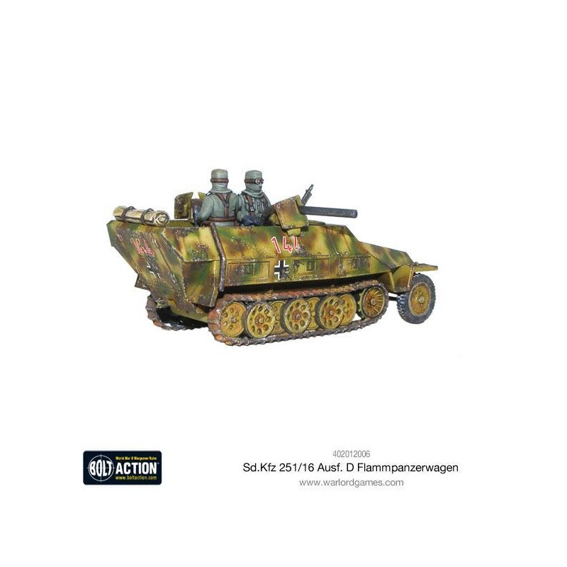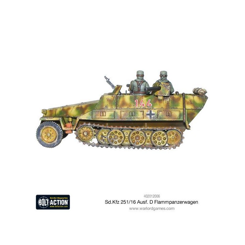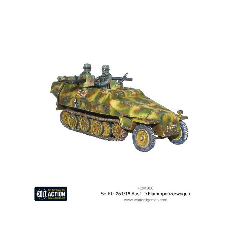 J'en profite !Le Sd.Kfz 251/16 est une version modifiée du célèbre semi-chenillé allemand Sd.Kfz 251/1 Ausf D, transformée pour remplir un rôle d’appui-feu rapproché à base de lance-flammes. Cette conversion redoutable embarquait deux projecteurs de flammes montés sur les flancs du véhicule, capables de semer la panique dans les rangs ennemis, notamment en zone urbaine ou forestière. Ce véhicule ajoutait une nouvelle dimension au soutien d’infanterie, combinant mobilité et pouvoir de destruction.