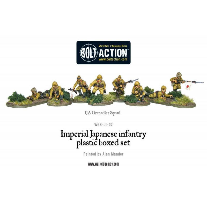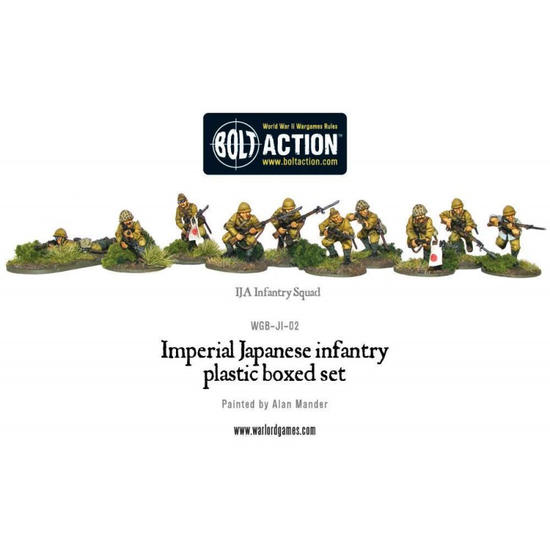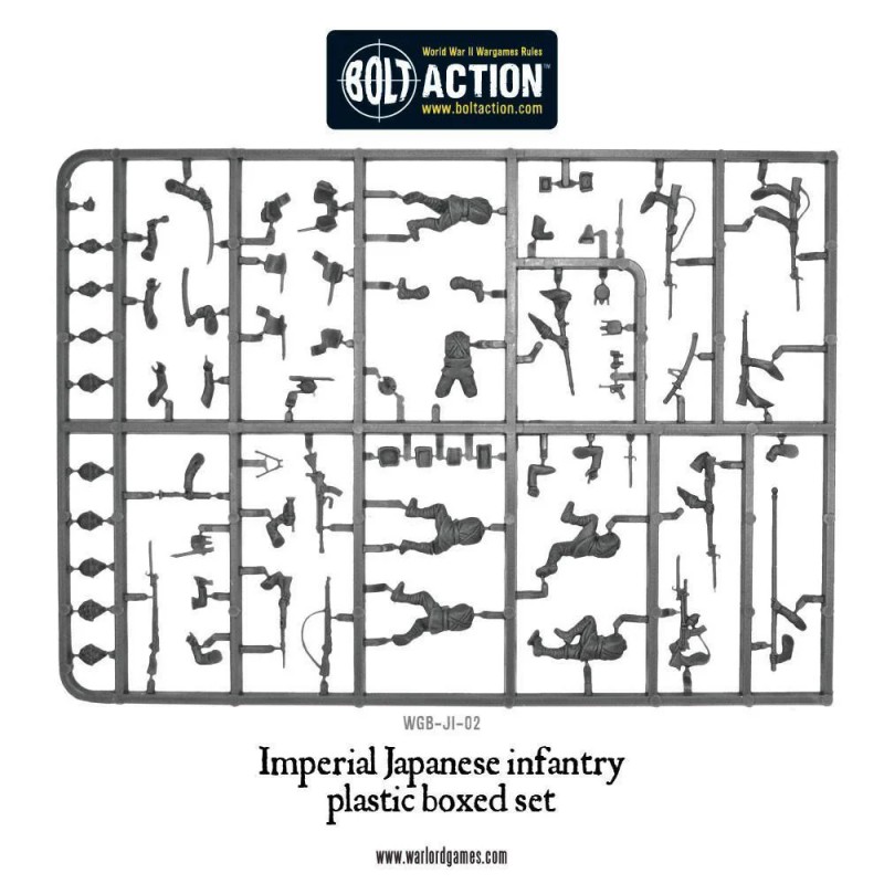 Ce set en plastique contient toutes les pièces nécessaires pour assembler 30 fantassins japonais en plastique, armés d'un large éventail d'équipements typiques, dont le fusil Arisaka, le mortier léger "knee", des grenades à main, la mitrailleuse légère Type 99 (et son baïonnette), le pistolet Type 14 Nambu, un drapeau, l'épée Shin Gunto de l'Officier (NCO), une mine antichar à charge de lancer, un fusil Arisaka avec baïonnette, le pistolet-mitrailleur Type 100, et bien d’autres accessoires. Vous y trouverez également des éléments supplémentaires comme une trompette et des drapeaux et bannières de dévotion en couleurs.