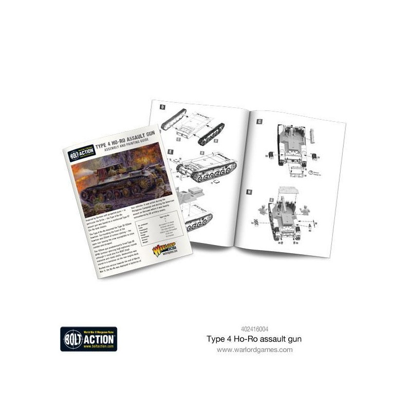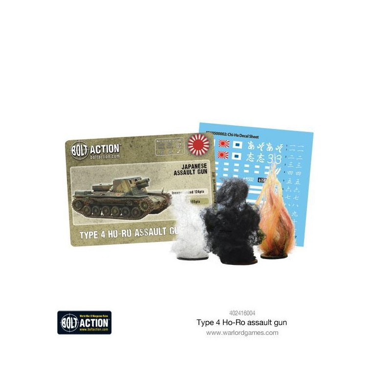 Le pack contient un canon d’assaut Ho-Ro en plastique, résine et métal, une carte de stat de Bolt Action, des marqueurs de dégâts pour véhicules, une planche de décalcomanies en couleur et un dé d'ordre Bolt Action.