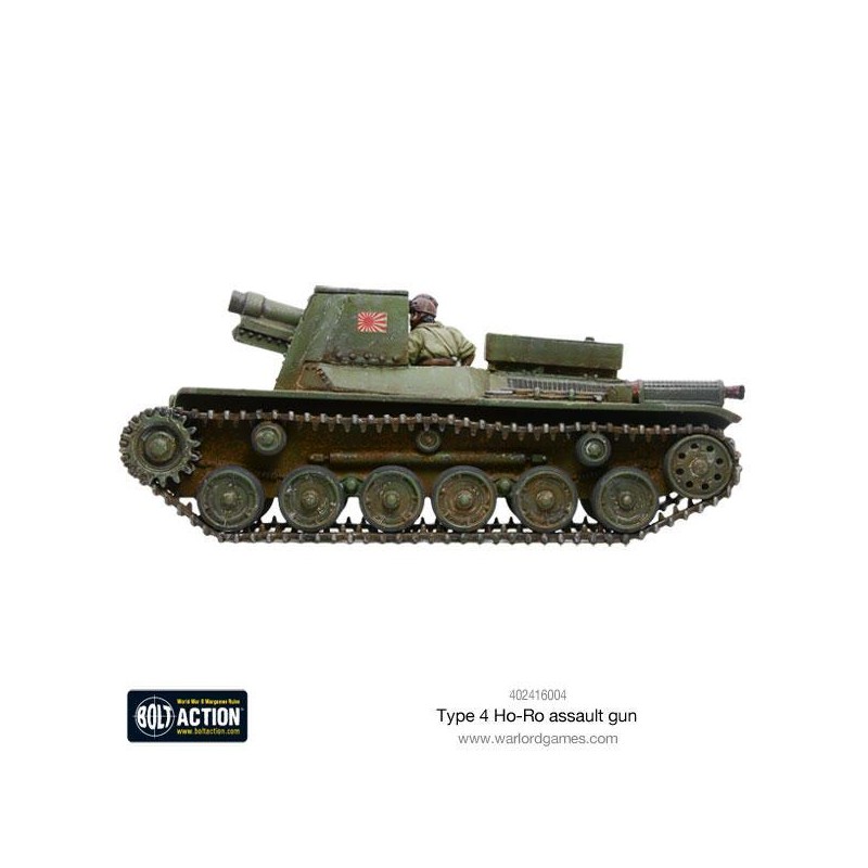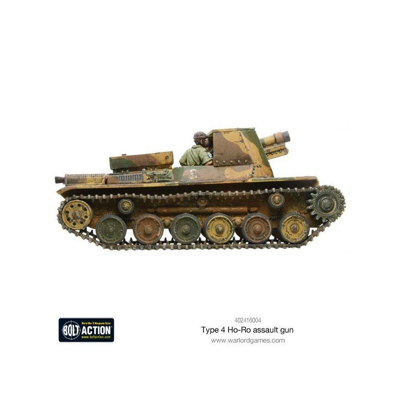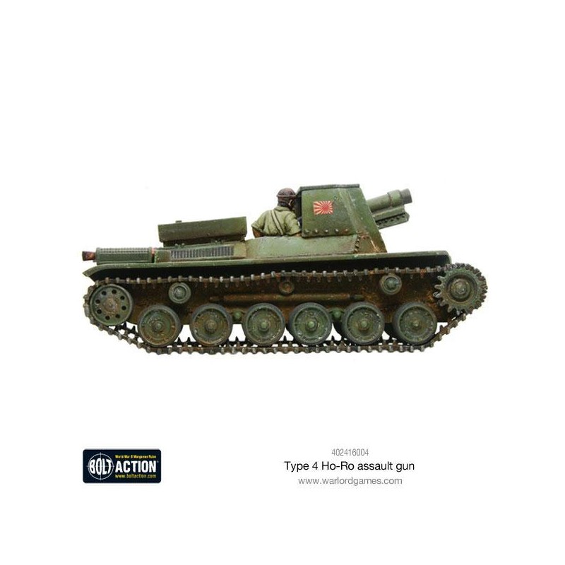 J'en profite !Inspiré des canons automoteurs allemands, le Type 4 Ho-Ro était un canon d’assaut basé sur un châssis renforcé du char Type 97 Chi-Ha. Le Type 4 Ho-Ro était équipé du canon de 150 mm Type 38. Le devant du canon était protégé par un blindage de 25 mm, bien que l'arrière ouvert exposait l'équipage aux combats rapprochés et aux éclats d'obus.