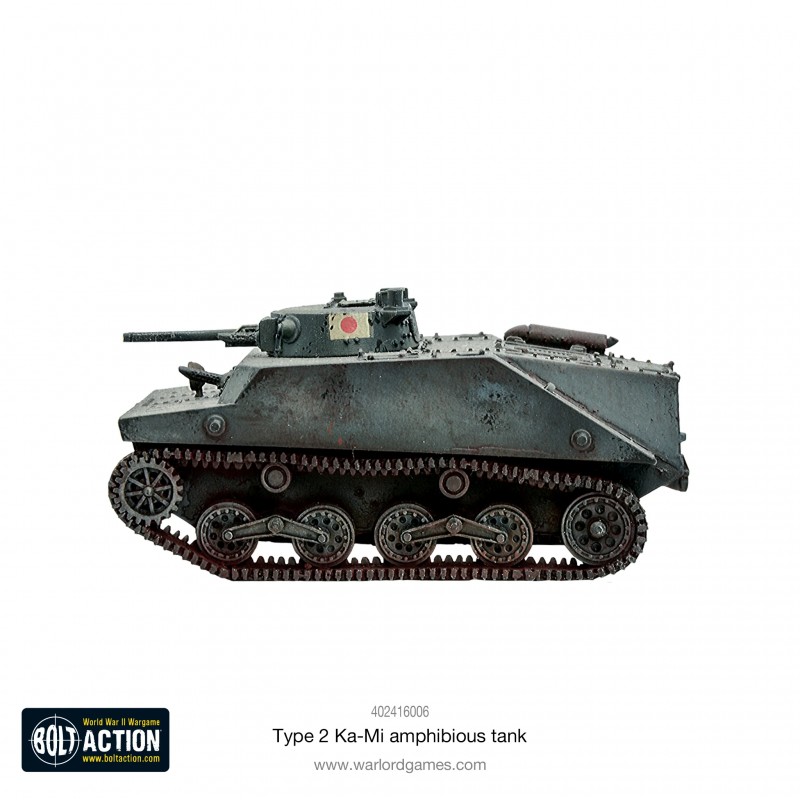 J'en profite !Le Type 2 Ka-Mi était le premier char amphibie de la Marine impériale japonaise. Basé sur le châssis du Ha-Go, très répandu, il était équipé de pontons amovibles et d'une coque de bateau pour faciliter la navigation. La Marine japonaise développa une série de chars amphibies pour soutenir les forces spéciales de débarquement (SNLF) lors des opérations amphibies, telles que celles menées pendant les conquêtes japonaises au début de 1941 et 1942.