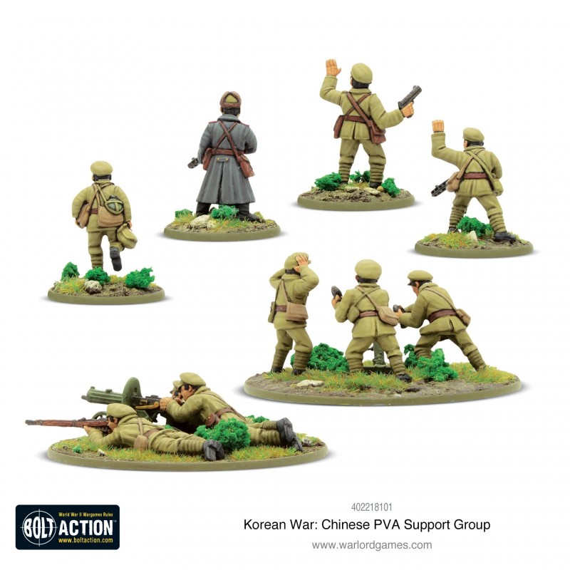 J'en profite !Le groupe de soutien de l’Armée populaire de volontaires (PVA) fournit les éléments indispensables pour appuyer vos troupes d’infanterie sur le champ de bataille. Que ce soit pour diriger, soigner ou écraser l’ennemi sous un feu nourri, ce set rassemble les unités de soutien clés de toute armée Bolt Action.