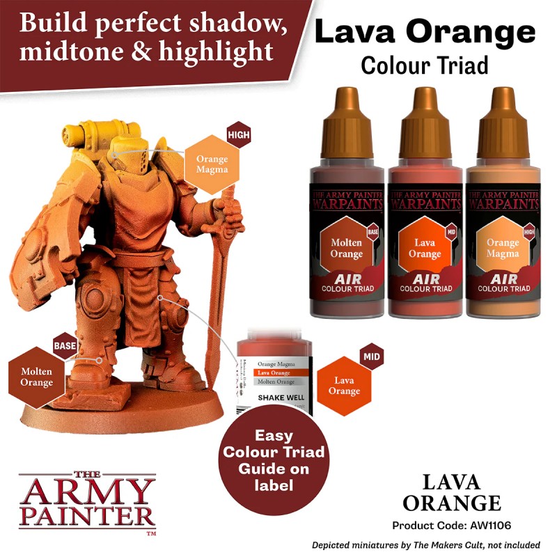 La gamme Warpaints Air repose sur un système de triade innovant : chaque couleur Warpaints Acrylics est associée à une teinte de Base et une teinte d’Éclaircissement. Cela simplifie le surlignage et l’ombrage zénithal, rendant la peinture d’armée plus rapide et harmonieuse.