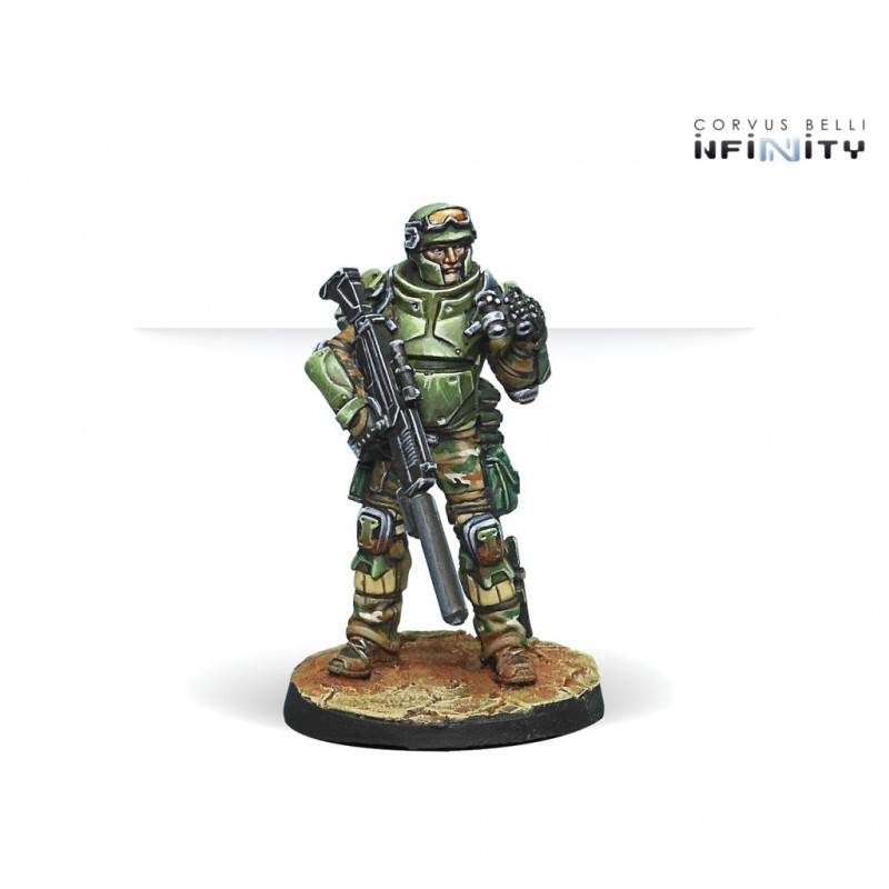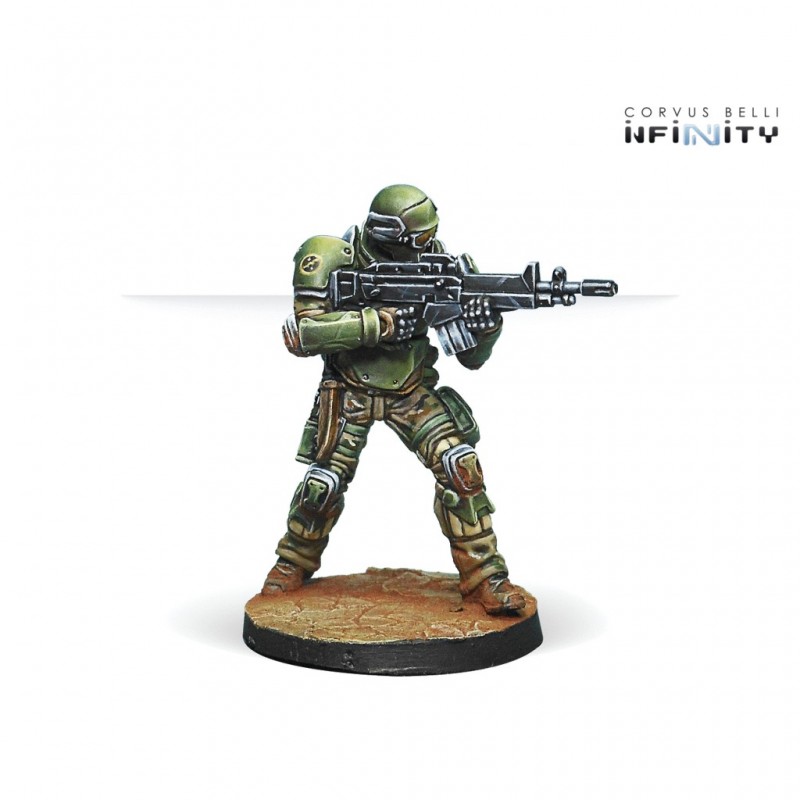 Quatre options d'armes pour cette infanterie moyenne, constituant un complément idéal au pack d'armée USAriadna, ainsi qu'un moyen d'obtenir les cinq membres nécessaires pour créer une équipe de pompiers Maraudeurs variée et puissante.
