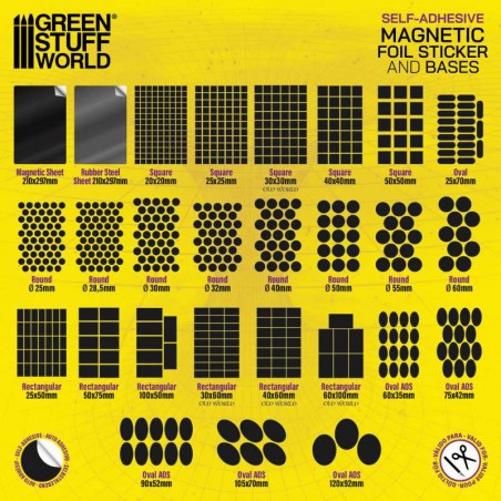 J'en profite !Les feuilles magnétiques flexibles autocollantes permettent de magnétiser facilement vos figurines de wargame sans outils ni collage complexe. Elles se fixent directement sous les socles pour créer une base magnétique prête à l’emploi. Disponibles en différentes formes et tailles (carrées, rectangulaires, rondes, ovales), ainsi qu’en feuilles entières à découper, elles s’adaptent à tous types de socles. Une simple paire de ciseaux suffit pour les ajuster précisément selon vos besoins.