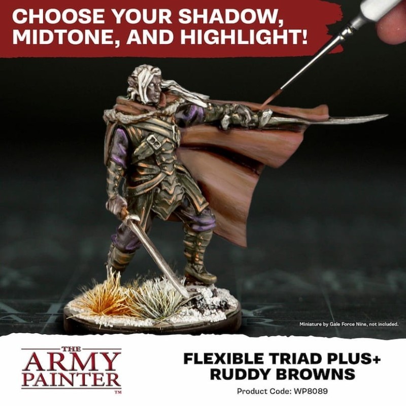 Ce coffret propose la triade complète des Ruddy Browns, idéale pour peindre des écorces d’arbres, des fourrures, du cuir ou des textures naturelles réalistes. Il comprend aussi une septième couleur exclusive, Banshee Brown, conçue en collaboration avec John Blanche dans le cadre de la série Masterclass de The Army Painter.