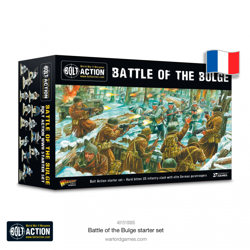 Ce set comprend un livret de règles au format A5 regroupant toutes les informations essentielles pour des parties dynamiques et immersives. Vous trouverez également des figurines plastiques détaillées représentant les parachutistes allemands Fallschirmjäger et l’infanterie américaine, prêtes à s’affronter dans les forêts glaciales de la Bataille des Ardennes. Dotées d’équipements hivernaux et d’un large choix d’armes, ces unités constituent un excellent point de départ pour une armée Bolt Action et conviendront aussi bien aux nouveaux joueurs qu'aux hobbyistes expérimentés.
