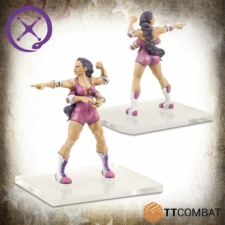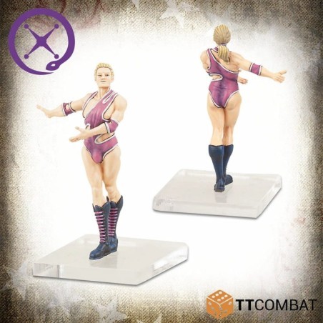 L’Exécuteur veille à ce que les règles soient respectées – gare aux lutteurs qui abusent des mêmes techniques, elle les sanctionnera avec force. Le Valet Hunk, lui, est une star montante dont l’énergie et le charisme électrisent la foule comme jamais.