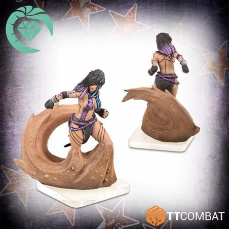 Angst Su Namun est une force implacable. Son style de Tomb Brawler déclenche la Fureur et ajoute 2 dégâts de base à tous ses combats. Avec le Diable de Poussière, elle invoque la puissance des tempêtes du désert pour asséner une attaque dévastatrice à 4 dégâts, suivie d’un second coup sans pitié. Et sa Lance de Sable frappe si vite que le sol devient transparent.