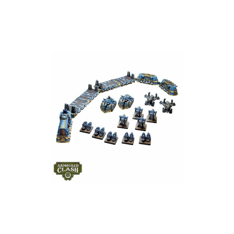 Ce groupe de combat pour Armoured Clash contient un imposant Durango Heavy Rail, symbole logistique de la force de l’Union. Tandis que le Lakota sert de base mobile, le Durango se concentre sur l’approvisionnement et la projection rapide des forces. Grâce à la garnison avancée Newhaven et au plateau de transport Rockridge, les redoutables Rolling Thunder et l’artillerie lourde Armstrong peuvent s’engager immédiatement sur la ligne de front.