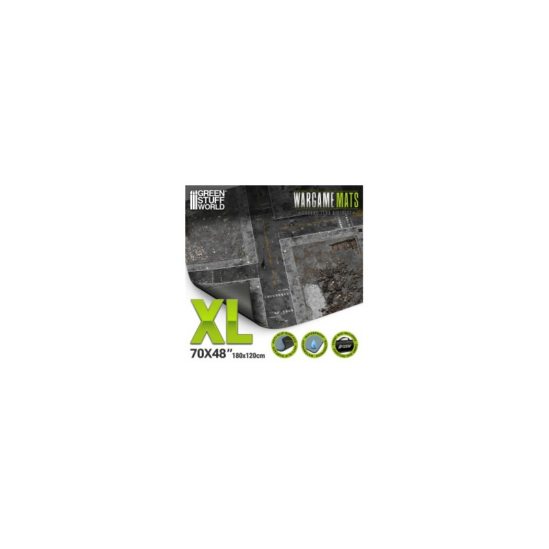 Imprimé en haute résolution, ce tapis séduit par son réalisme : les fissures, les décombres et les ombres naturelles créent une profondeur visuelle sans compromettre la lisibilité du terrain. Chaque détail est pensé pour favoriser le jeu stratégique tout en enrichissant l’atmosphère de vos parties. Le rendu en vue zénithale permet une lecture claire et cohérente des zones, facilitant les mouvements, les lignes de vue et la gestion des couverts. Quel que soit l’angle depuis lequel vous observez la table, l’immersion est totale.