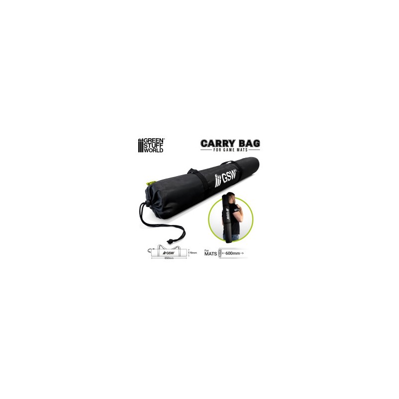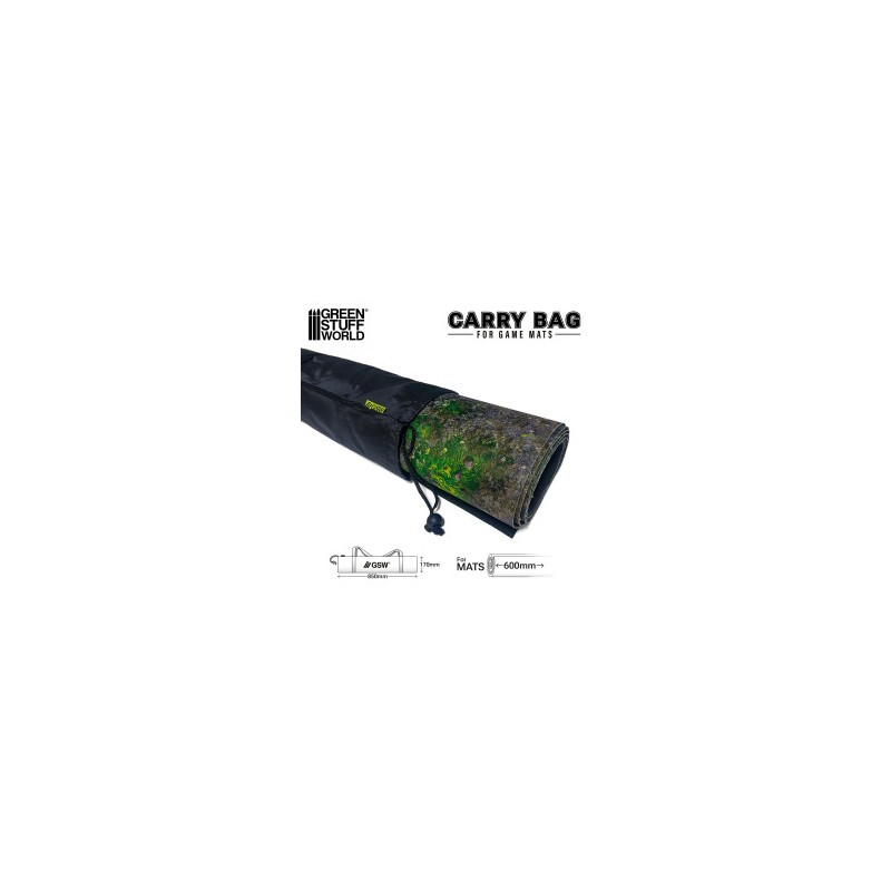 Green Stuff World propose deux formats de sacs pour répondre à tous les besoins : une version compacte de 60 cm pour les tapis plus petits, et une version longue de 122 cm pour les formats standards ou multiples. Le modèle 60 cm est l’accessoire indispensable pour tout joueur souhaitant organiser, transporter et préserver ses tapis de jeu avec efficacité et simplicité.
