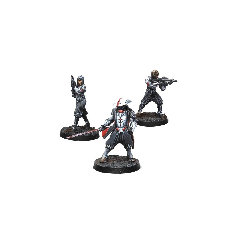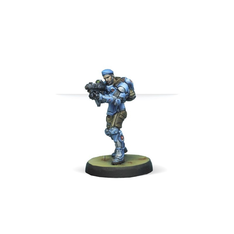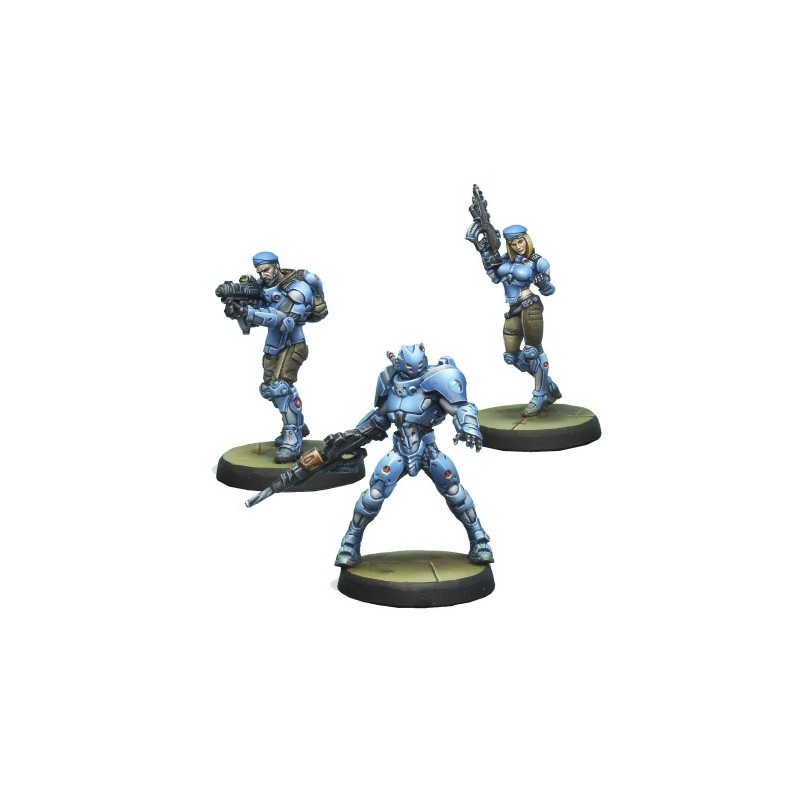 La boîte contient six figurines réparties entre deux factions emblématiques : l’armée panocéanienne et l’armée de la JSA. Vous y trouverez 2 fusiliers équipés de fusils combi, 1 Orco en armure lourde armé d’un fusil MULTI, 2 Keisotsus avec fusil combi et 1 Shikami équipé lui aussi d’un fusil MULTI. Chaque figurine est finement détaillée et prête à rejoindre votre table de jeu après assemblage et peinture.