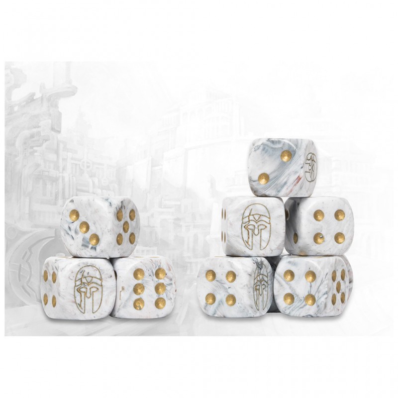Avec 24 dés inclus dans chaque paquet, ce set est idéal pour les jeux nécessitant de nombreux jets ou pour harmoniser tous vos dés à l'image de votre faction. Que ce soit pour des parties compétitives, des campagnes narratives ou comme ajout de collection, ces dés marbrés offrent une combinaison idéale de beauté classique et de performance pratique. Emportez-les dans vos batailles et affirmez le style de votre armée avec raffinement.