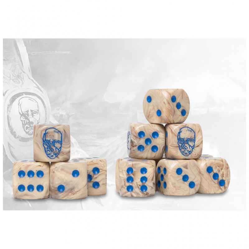 J'en profite !Ce set de dés D6 en résine a été conçu pour évoquer une esthétique futuriste et organique à la fois. Chaque dé présente un subtil mélange de marbrures tans et grises, rappelant à la fois les teintes minérales de paysages désolés et l'équipement de factions évoluant dans des environnements hostiles. Les puces bleu royal incrustées offrent une excellente lisibilité, tout en contrastant élégamment avec la base texturée des dés.