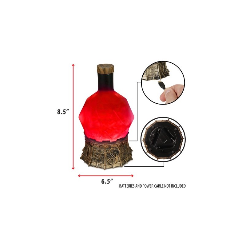 Pratique et portable, la lampe fonctionne avec 3 piles AAA (non incluses) ou via un câble USB-C (non fourni), vous permettant de l’utiliser où bon vous semble. Elle offre jusqu'à 12 heures d'autonomie avec des piles alcalines, et peut être facilement déplacée d’une table à l’autre selon vos besoins. Avec ses dimensions compactes de 21,5 x 16,5 x 16,5 cm, elle trouve sa place dans n’importe quel décor. Cadeau original et décoratif, cette potion magique séduira aussi bien les amateurs de jeux que les passionnés de fantasy.