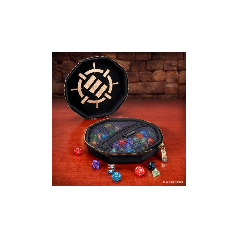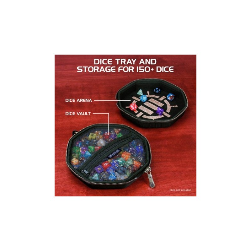 Son extérieur rigide renforcé protège efficacement contre les chocs, tandis que l’intérieur est recouvert d’une doublure douce résistante aux rayures pour préserver l’état impeccable de vos dés. Le plateau à dés intégré offre une surface stable et silencieuse pour effectuer vos jets, avec une grande paroi qui empêche les dés de s’échapper, même lors des lancers les plus dynamiques. Une fermeture éclair solide et un clip métallique vous permettent d’attacher facilement la mallette à un sac ou à une ceinture pour un transport rapide et sécurisé.