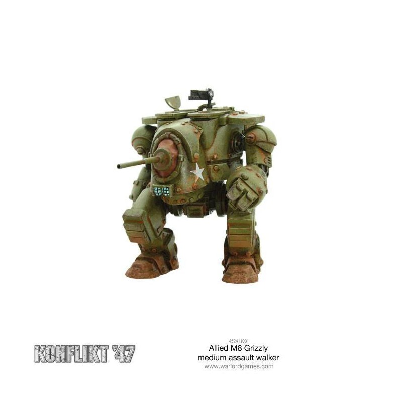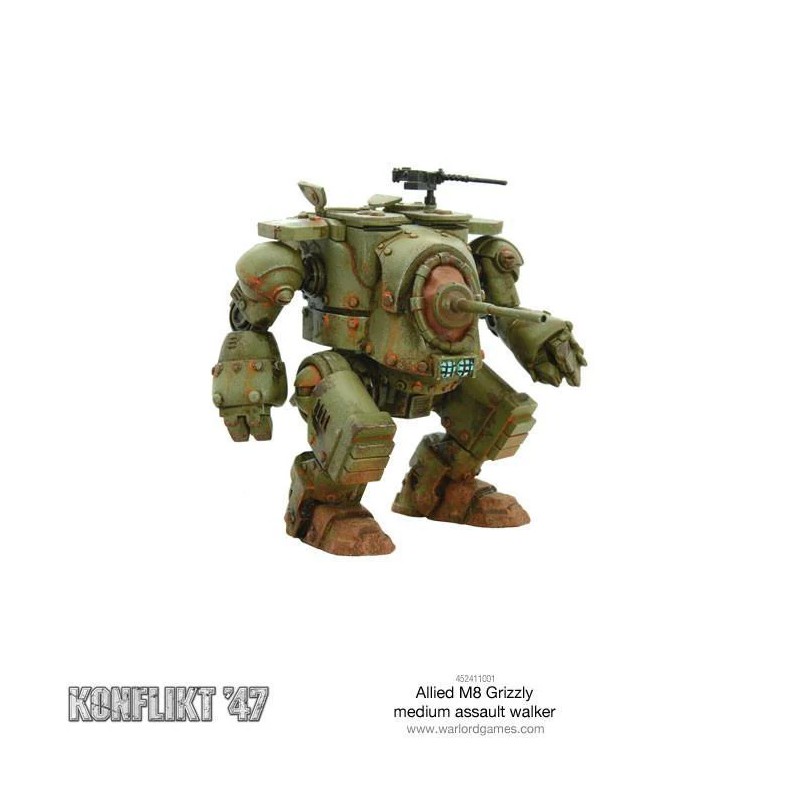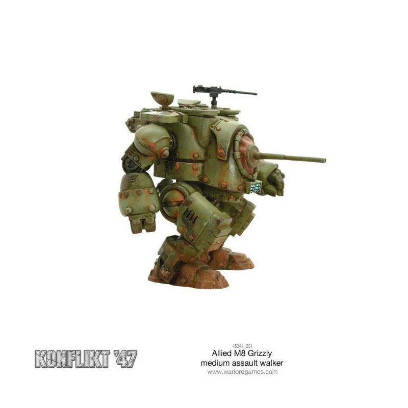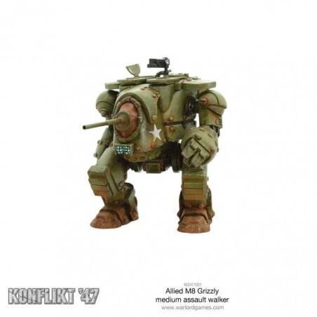 J'en profite !Le M8 Grizzly Medium Assault Walker est le premier véritable marcheur de combat conçu à partir de la technologie Rift. Résultat d’un développement axé sur l’efficacité et la robustesse, le Grizzly incarne parfaitement la fusion entre puissance de feu et capacité d’adaptation. Équipé d’un canon de 75 mm éprouvé et d’une mitrailleuse lourde de calibre .50, il se montre aussi performant contre l’infanterie que contre les véhicules légers.