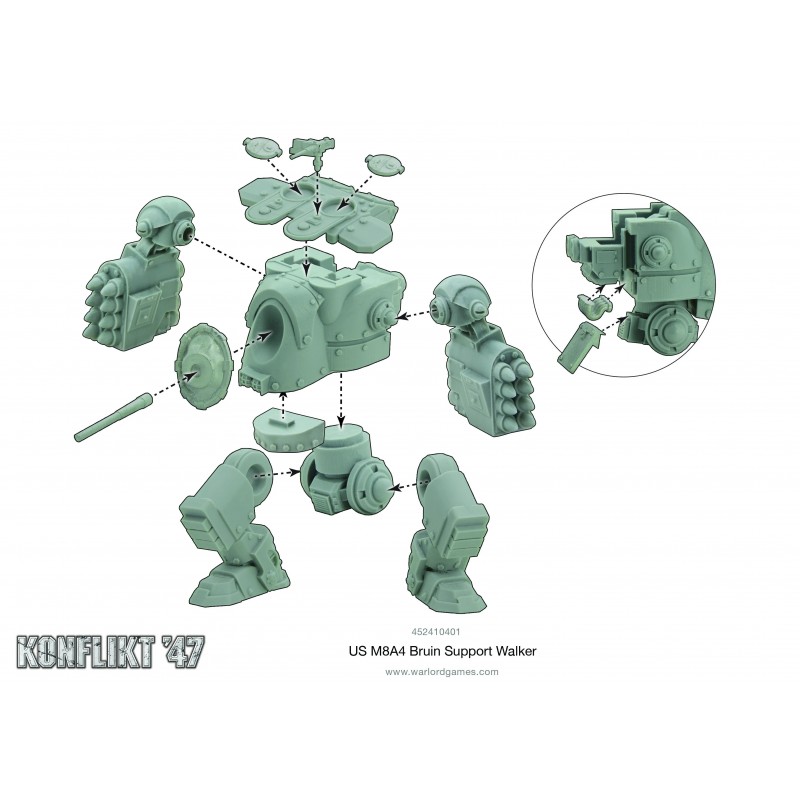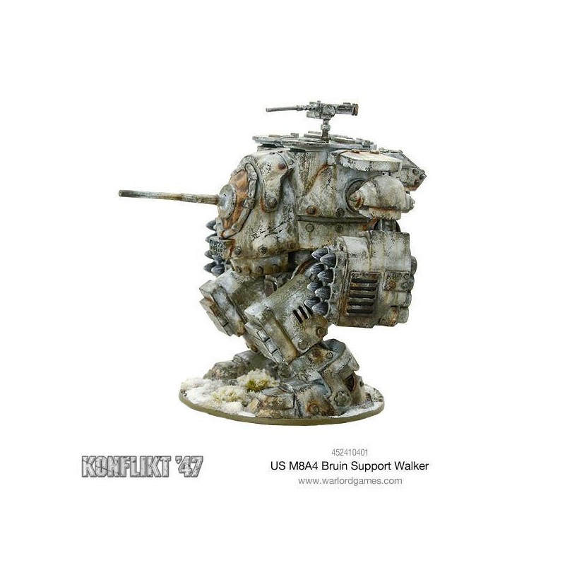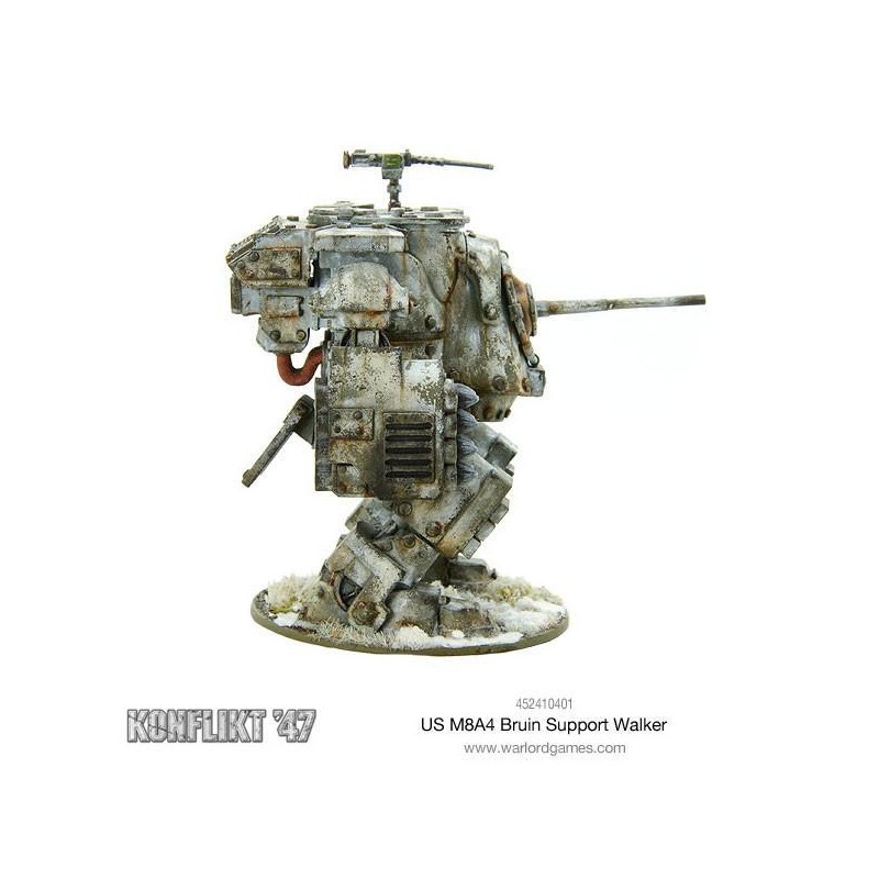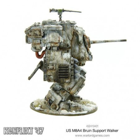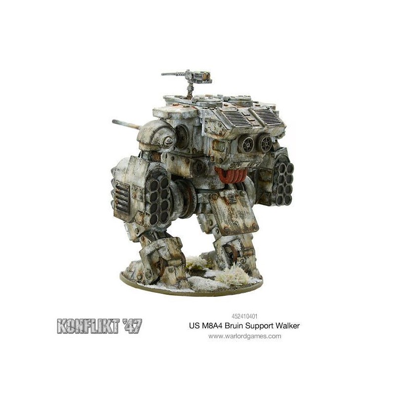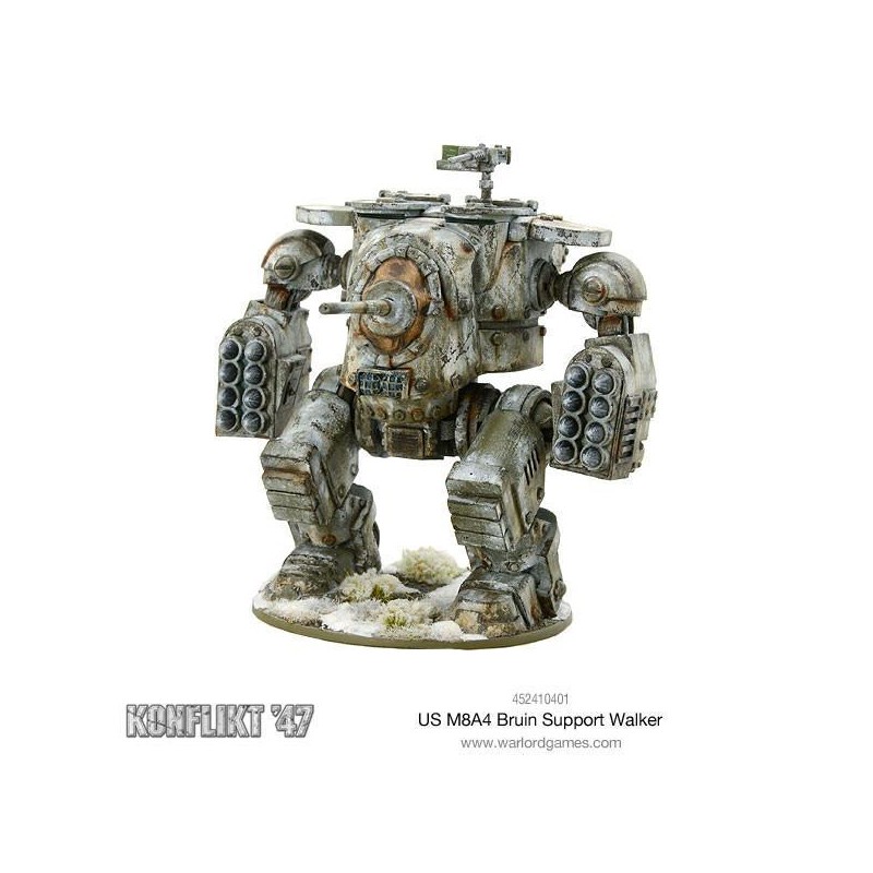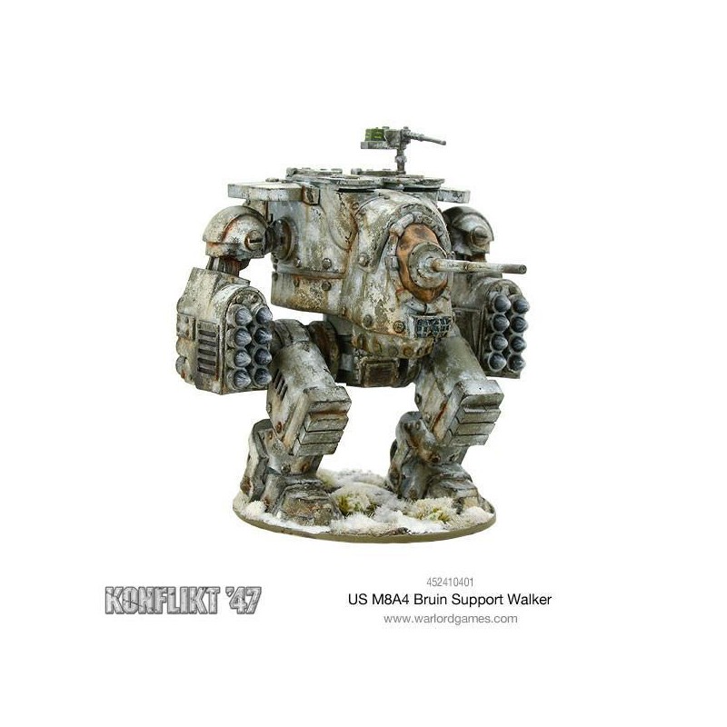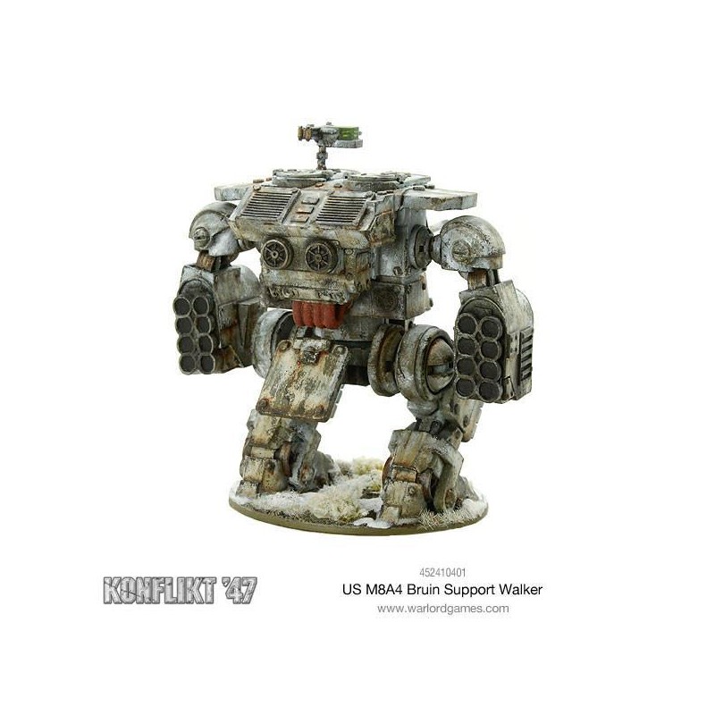 J'en profite !Si le Grizzly excelle dans de nombreuses situations de combat, certaines menaces comme les fortifications lourdes ou les blindés les plus puissants nécessitent une réponse plus musclée. C’est dans cette optique qu’est né le Bruin : une version modifiée du Grizzly conçue pour délivrer une puissance de feu massive grâce à des lance-roquettes lourds montés sur les bras, remplaçant les poings mécaniques d’origine.