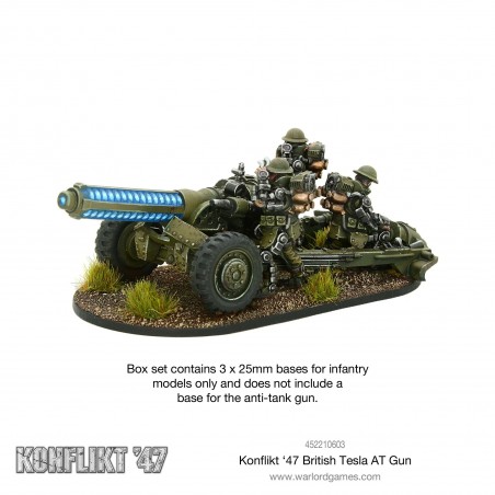 J'en profite !Suite au développement rapide des armes Tesla tractées au sein des unités américaines d’infanterie blindée, le gouvernement britannique a immédiatement exigé l’accès à ces nouvelles technologies. Conscients du manque de puissance antichar dans les bataillons d’élite Galahad, les ingénieurs britanniques ont vu dans ce canon Tesla une solution naturelle et prometteuse.