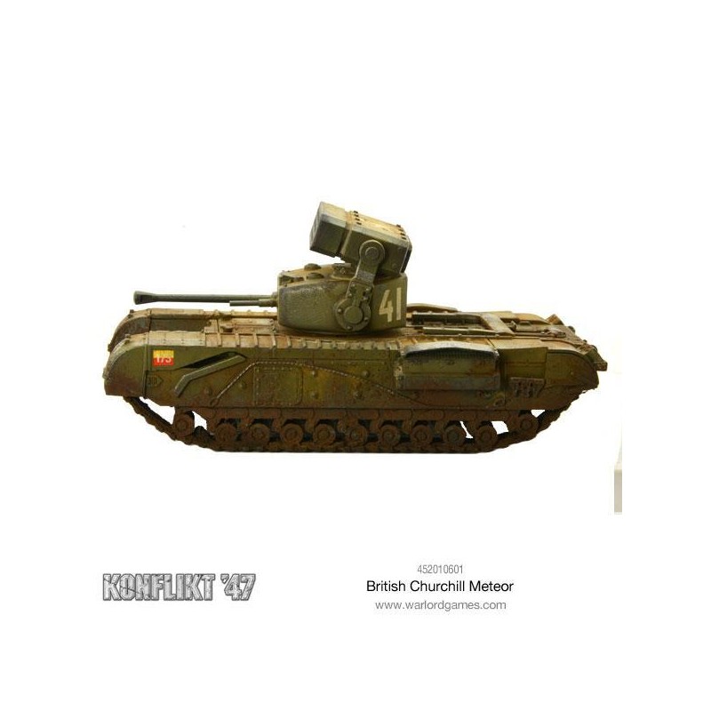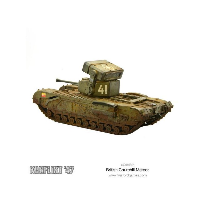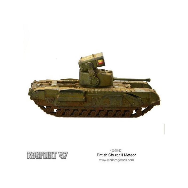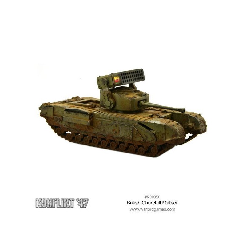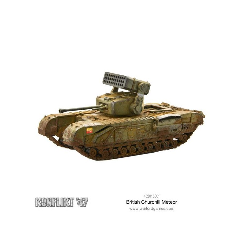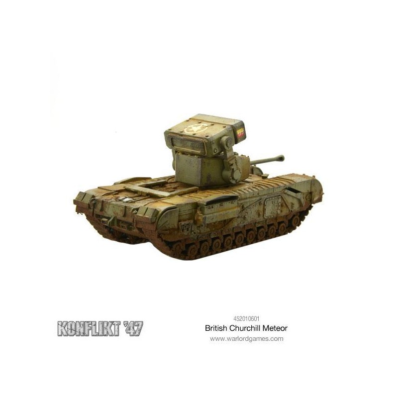 Monté sur un châssis de Churchill lourdement blindé, le système Meteor représente une menace sérieuse sur le champ de bataille. Sa puissance de feu en fait une cible prioritaire pour l’ennemi, qui cherchera à le neutraliser par concentration de tirs ou manœuvres d’encerclement. Pour en tirer le meilleur parti, soutenez le Meteor avec de l’infanterie ou des équipes d’armes afin de sécuriser ses flancs et maintenir une ligne de tir efficace.