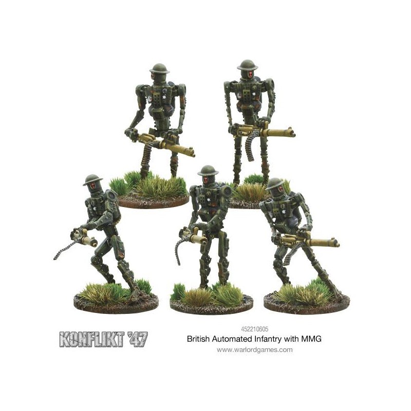 J'en profite !Les Automated Infantry sont des automates de 3 mètres de haut, capables de transporter une puissance de feu impressionnante. Conçus pour mener des assauts frontaux ou défendre les arrières, ces unités robotiques réduisent considérablement les pertes humaines en remplaçant les soldats britanniques dans les missions les plus risquées. Leur présence imposante sur le champ de bataille inspire la crainte et offre un soutien inestimable aux troupes humaines.