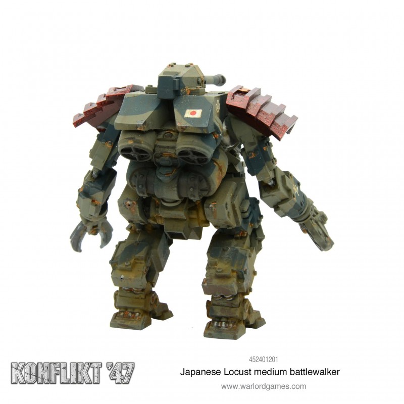 J'en profite !Grâce au partage de technologies avec le programme Panzermech allemand, le Japon a pu améliorer considérablement son programme de Battlewalkers. Le Locust, un marcheur bipède de taille moyenne équipé d’un système de saut, est directement inspiré du Heuschrecke allemand et offre une alternative performante aux châssis Grizzly et Mudskipper des Alliés.