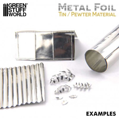 Parmi ses nombreuses applications, cette feuille d’étain est parfaite pour la création de détails réalistes : toitures, bardages, gouttières, drapeaux, feuillages ou tissus miniatures. Elle est également très utilisée pour simuler des éléments mécaniques ou industriels sur des véhicules, des vaisseaux ou des structures futuristes. Grâce à sa flexibilité, elle s’adapte facilement à des formes complexes ou courbes. Vous pouvez aussi l’utiliser pour fabriquer vos propres outils de formage ou des moules sur mesure pour travailler d’autres matériaux comme l’argile ou la résine.