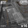 Le set comprend un assortiment complet pour couvrir divers types de bâtiments et ruines : 6 gabarits de 6″ × 12″, 6 gabarits de 5″ × 10″ et 4 gabarits de 4″ × 6″. Que ce soit pour structurer vos décors lors d’une partie amicale ou respecter les standards d’un événement compétitif, ces zones de ruines transparentes sont la solution idéale pour un jeu fluide et précis.