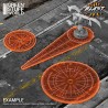 Conçus pour un usage compétitif comme narratif, ces gabarits en acrylique rigide sont faciles à nettoyer et résistent à la peinture, à la colle et aux éclaboussures de boissons. Ils s’intègrent parfaitement dans la mallette de tout général souhaitant mesurer rapidement et précisément les zones d’effet de ses machines de guerre, sorts ou armes explosives. Un outil indispensable pour apporter plus de clarté et de fluidité à vos combats tactiques.