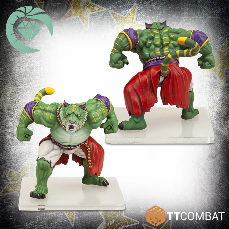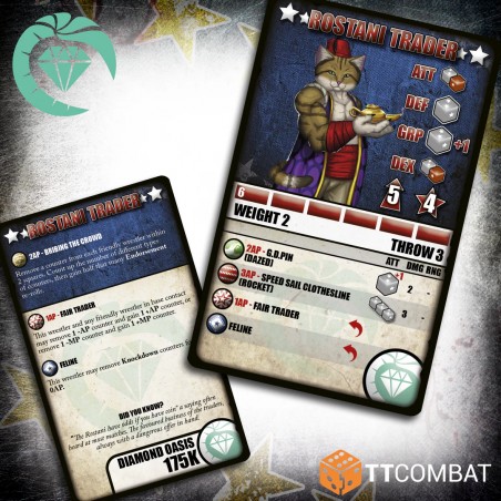 Cette boîte contient cinq figurines en résine accompagnées de cinq socles en acrylique transparent et de cinq cartes de personnage. Les socles sont recouverts d’un film coloré protecteur à retirer avant l’assemblage. Un ajout parfait pour enrichir vos parties et diversifier vos stratégies, en introduisant des personnages puissants, originaux et visuellement saisissants sur le ring.
