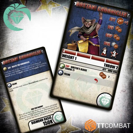 J'en profite !Apportez puissance et polyvalence à vos combats avec cette équipe unique de lutteurs Rostani et de créatures spectaculaires. Le Chroniqueur Rostani soutient vos alliés en leur accordant des relances précieuses, tandis que l’Élémentaire de Fil, véritable petit colosse, utilise une attaque de corde redoutable qui permet au reste de votre équipe d’enchaîner des attaques depuis n’importe quel point du ring. Le Négociant Rostani, quant à lui, est un maître tacticien qui transforme vos contres défavorables en opportunités, garantissant toujours une issue à votre avantage.