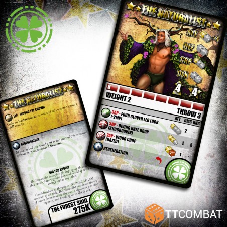 Favori de la foule, le Naturaliste sait également séduire le public en gagnant des relances pour son équipe, ce qui lui offre plus d’actions et augmente encore son efficacité. Cette boîte contient une figurine en résine, une carte de personnage et un socle en acrylique transparent protégé par un film coloré à retirer avant l’assemblage. Un ajout incontournable pour enrichir vos parties et ajouter un champion spectaculaire à votre collection.