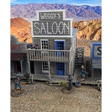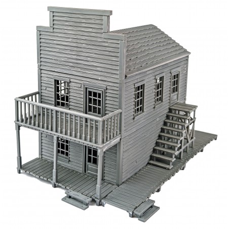 J'en profite !Ce kit de bâtiment en plastique à deux étages avec trottoirs vous permet de donner de l’ampleur et du réalisme à vos décors de jeu. Inspiré de l’architecture typique des villes du Far West, il constitue une pièce maîtresse pour mettre en scène des affrontements spectaculaires. Avec ses deux niveaux, il offre une verticalité qui enrichit la stratégie et permet de varier les situations de jeu, que ce soit pour des fusillades en hauteur, des embuscades derrière les façades ou des duels en pleine rue. Idéal pour compléter une table de jeu, il s’adapte à toutes les configurations et devient rapidement un décor incontournable.