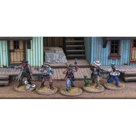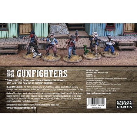 Les figurines mesurent 28 mm et sont fournies en plastique, non assemblées et non peintes. Un peu de modélisme sera nécessaire pour monter vos personnages et leur donner vie. Ce produit n’est pas adapté aux enfants de moins de 14 ans. Avec ce set, vous disposez de tout le nécessaire pour créer des gangs diversifiés et détaillés, parfaitement adaptés à vos parties de Dead Man’s Hand ou à d’autres jeux d’escarmouche dans l’univers de l’Ouest sauvage.