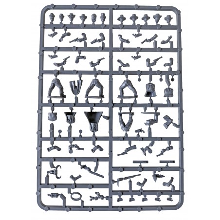 Ce coffret contient 10 figurines en plastique multipart, offrant une personnalisation quasi illimitée grâce à la multitude de pièces incluses. Chaque miniatures peut être assemblée de nombreuses façons pour créer des personnages uniques et variés. Les armes fournies sur les grappes incluent des pistolets, un fusil à répétition, deux fusils à pompe, un fusil classique ainsi qu’un ensemble d’accessoires supplémentaires pour armer et individualiser chaque membre de votre bande. Des socles en plastique sont également inclus pour stabiliser vos figurines sur le plateau.