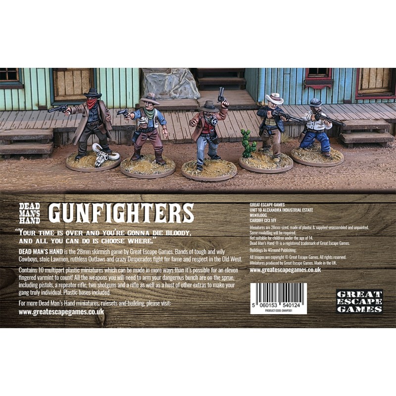 J'en profite !"Votre temps est écoulé et vous allez mourir dans le sang, et tout ce que vous pouvez faire, c'est choisir où." Dead Man’s Hand est un jeu d’escarmouche en 28 mm signé Great Escape Games, dans lequel bandes de cowboys intrépides, shérifs stoïques, hors-la-loi impitoyables et desperados imprévisibles s’affrontent pour la gloire et le respect dans l’Ouest sauvage. Chaque partie met l’accent sur la stratégie, les duels rapides et les situations imprévisibles qui caractérisent les confrontations du Far West.