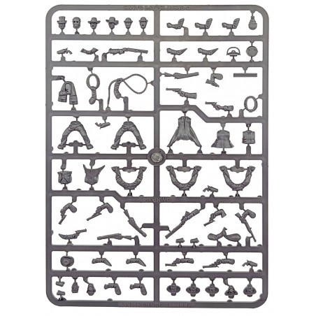 J'en profite !Ce coffret contient 10 figurines en plastique multipart accompagnées de 10 chevaux en plastique, offrant des possibilités de personnalisation presque infinies. Chaque figurine peut être assemblée de multiples façons, permettant de créer des bandes uniques et variées, parfaitement adaptées aux aventures de l’Ouest sauvage. Le set inclut toutes les armes nécessaires ainsi qu’une gamme complète d’accessoires tels que chapeaux supplémentaires, butin, sacoches, fusils holsterés et lasso, pour donner vie à vos personnages et enrichir vos scénarios.