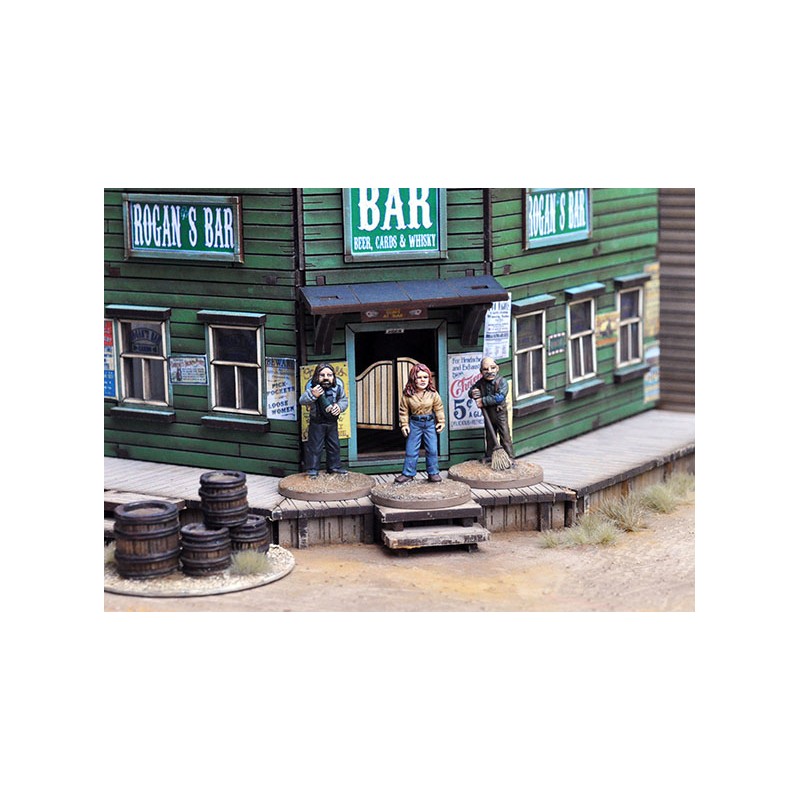 J'en profite !Ce set comprend trois figurines métalliques représentant des civils à l’échelle 28 mm, parfaites pour peupler votre ville et créer des scènes de chaos dans vos parties Dead Man’s Hand. Les modèles sont fournis non peints et peuvent être placés librement dans vos scénarios pour enrichir vos décors et vos histoires. Rogan's Bar est disponible séparément pour compléter vos mises en scène.