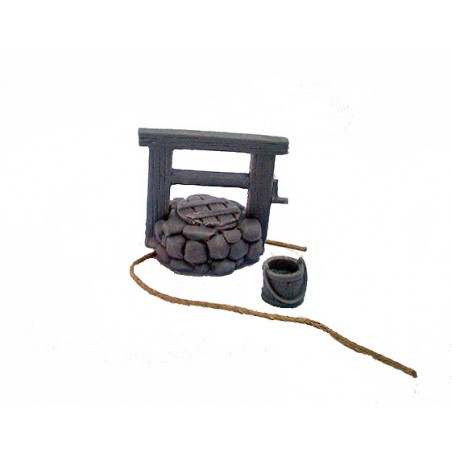 Ce set en trois parties comprend le socle du puits, la tête du puits et le seau. Vous devrez fournir votre propre corde pour le seau.