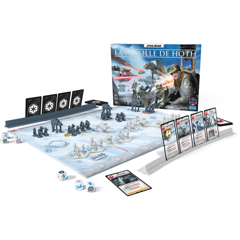 Battle of Hoth utilise le célèbre système de jeu Command & Conquer de Richard Borg, déjà connu des amateurs de Mémoire 44 ou Battlelore. Ce système combine des règles simples et accessibles avec une profondeur stratégique qui ravira les joueurs expérimentés. À l’aide de cartes Ordre, vous activerez vos unités tour à tour pour tenter de prendre l’avantage et remporter la victoire. Accessible mais riche en rebondissements, ce jeu est idéal pour plonger au cœur de l’une des batailles les plus mémorables de Star Wars.