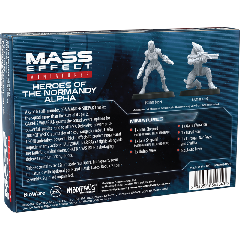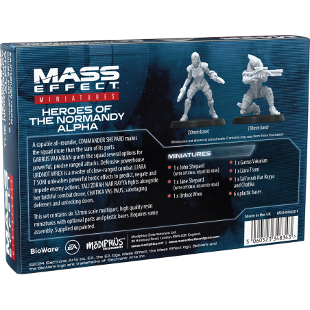 Cette boîte contient six figurines représentant les membres de l’équipage du Normandy : Shepard version homme et femme, Garrus Vakarian, Liara T’Soni, et soit Tali’Zorah nar Rayya ou Urdnot Wrex. Chaque figurine présente des poses différentes de celles de la boîte de base, ajoutant dynamisme et variété à vos parties. Elles s’intègrent parfaitement aux ennemis du jeu de plateau, offrant une expérience de jeu plus immersive et stratégique.