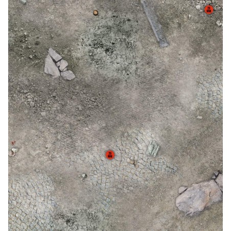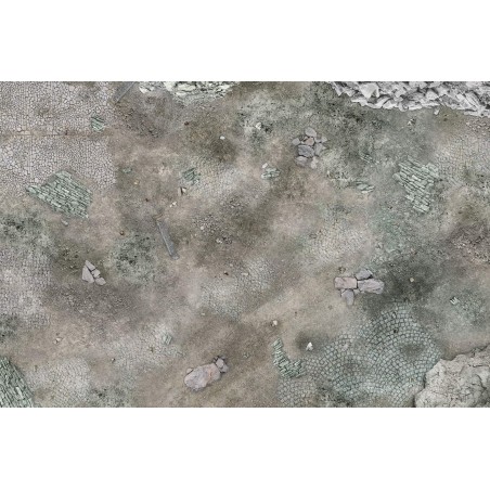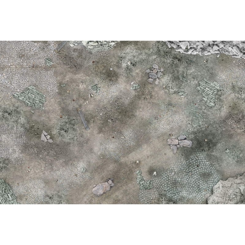 Plongez au cœur de ruines légendaires avec ce tapis de jeu détaillé, conçu pour offrir une expérience de jeu immersive. Jadis une majestueuse capitale, cette ville en ruines devient aujourd’hui le théâtre de batailles épiques. Chaque élément du tapis est pensé pour reproduire avec réalisme les vestiges d’une cité, des pavés brisés aux structures de pierre partiellement effondrées, créant un décor qui transporte immédiatement les joueurs dans l’ambiance d’un champ de bataille dramatique.