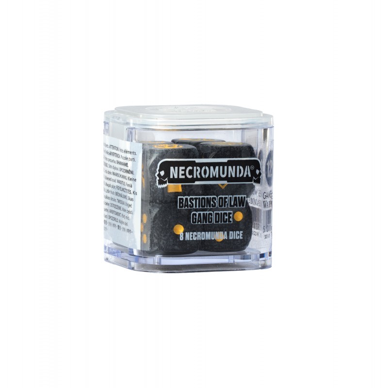 J'en profite !Complétez vos parties de Necromunda avec ce set de dés spécialement conçu pour refléter l’intensité des affrontements dans les ruches. Composé de huit dés en plastique noir nacré aux marquages jaunes, ce pack allie esthétique et praticité. Chaque dé est pensé pour s’intégrer parfaitement dans le système de jeu, tout en offrant une lisibilité claire et rapide lors des lancers. Avec leur finition soignée et leur contraste marqué, ces dés ne sont pas seulement fonctionnels : ils apportent également une touche visuelle distinctive à votre collection.