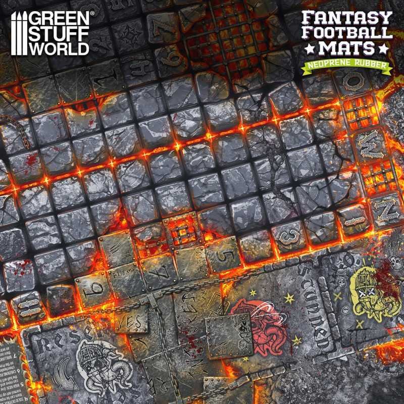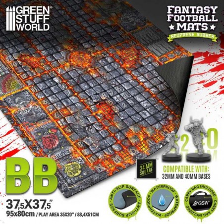 J'en profite !Les tapis en néoprène Fantasy Football de Green Stuff World sont spécialement conçus pour offrir une expérience de jeu optimale, que ce soit pour Blood Bowl ou d’autres variantes de Fantasy Football. Ils intègrent toutes les fonctionnalités nécessaires pour un déroulement fluide : bancs de touche intégrés, tableau de coup d’envoi, tableau de passes et tableaux Nuffle. Grâce à ces éléments, chaque partie est simple à gérer et immédiatement immersive, que vous soyez un joueur occasionnel ou un habitué des tournois.