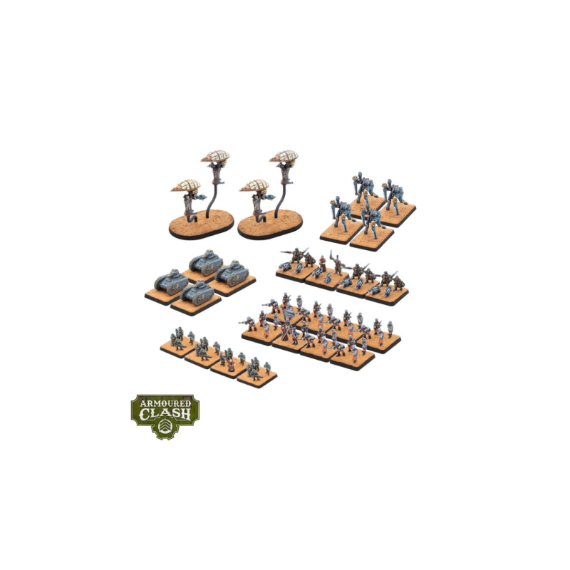 Autour de ces redoutables combattants, les forces de soutien de l’Alliance assurent un équilibre parfait entre puissance de feu et manœuvrabilité. Les Alpini Rangers et la milice Ordenanza apportent une présence solide, tandis que les tireurs d’élite Globonauta profitent de leur mobilité pour harceler l’adversaire à distance. Les véhicules blindés Charrette renforcent cette force en combinant résistance et armes thermiques capables de percer les défenses ennemies.