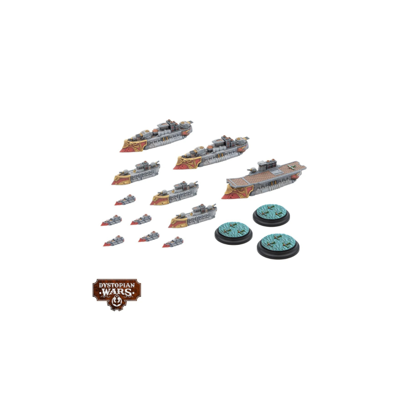 J'en profite !Depuis plus d’un siècle, l’ingénierie de la Couronne domine le monde et assure à sa marine un rôle de leader incontesté. Si son contrôle des mers n’est plus aussi absolu qu’auparavant, ses flottes restent redoutées et capables d’imposer leur présence partout où elles voguent. Ce kit de démarrage de faction offre l’opportunité idéale de commencer ou d’agrandir une collection Dystopian Wars, en mettant à disposition certains des navires les plus emblématiques de la Couronne.
