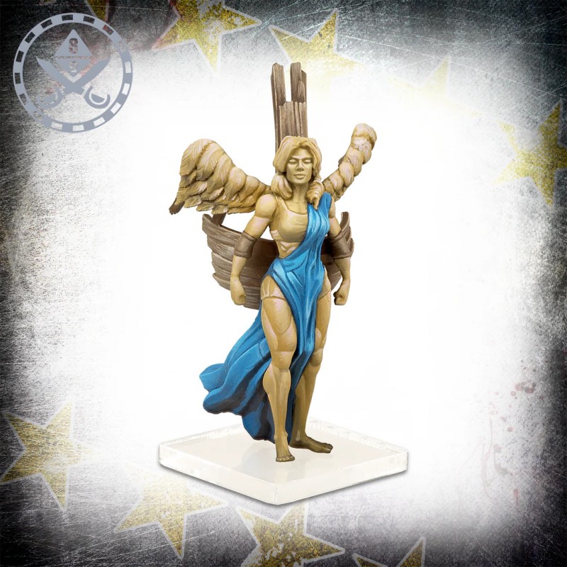 La boîte contient une figurine en résine Lady Luck et un socle acrylique carré avec film protecteur à retirer avant assemblage. La figurine est fournie non peinte et nécessite un nettoyage, un assemblage et éventuellement le rebouchage de petits trous. Rumbleslam – Lady Luck constitue un brawler puissant et stratégique, idéal pour apporter style et surprise à vos parties et dominer le ring avec ingéniosité.