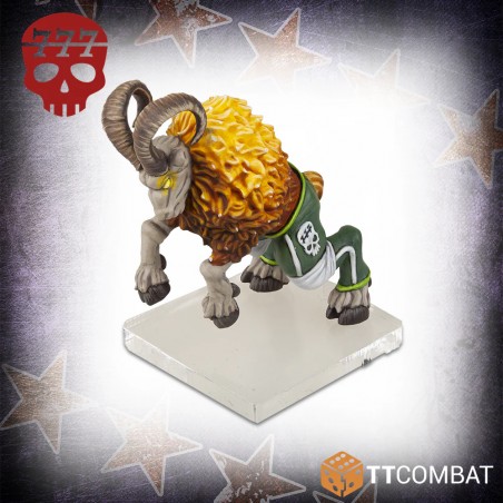 La boîte contient une figurine en résine Randy (le G.O.A.T.), une carte de personnage et un socle acrylique transparent avec film protecteur à retirer avant assemblage. La figurine est fournie non peinte et non assemblée, nécessitant nettoyage, montage et éventuellement rebouchage de petits trous. Rumbleslam – Randy permet aux fans d’ajouter une star charismatique et puissante à leur équipe, offrant un gameplay intense et spectaculaire dans chaque affrontement.