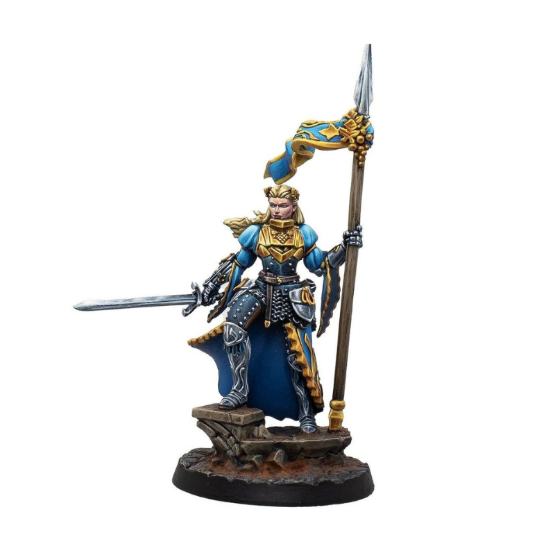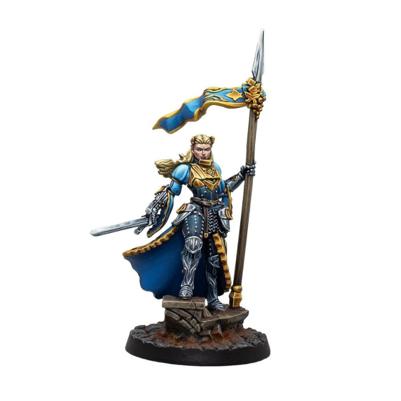 Genevieve est une commandante d’exception, symbole de discipline et d’inspiration pour les troupes qu’elle mène. Spécialiste du combat coordonné, elle excelle dans la gestion des chevaliers et optimise leur potentiel défensif. Sa présence sur le champ de bataille transforme une simple ligne de défense en un mur infranchissable, chaque unité bénéficiant de sa maîtrise tactique. Genevieve permet également à ses alliés de réaliser des activations supplémentaires, renforçant la fluidité de leurs manœuvres tout en offrant la possibilité d’améliorer leurs attaques au moment décisif.